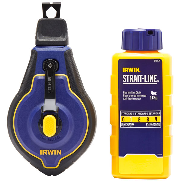 Supplied with a 30m hi-tensile line, wide prong hook for secure anchoring and 1 x Bottle of IRWIN® STRAIT-LINE® Blue Chalk 113g.