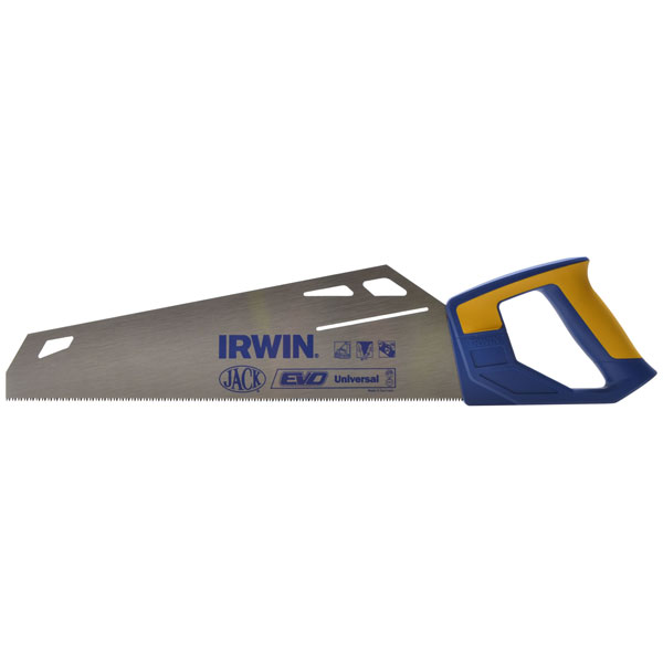 The IRWIN Jack EVO Universal Hand Saw features 'Human Interaction Technology', which perfectly matches the handle position to the tooth design, but also provides superior performance in speed, ease and quality of cut and reduces the required energy to do the job. This is also reflected by the usage of up to 100% of the blade.