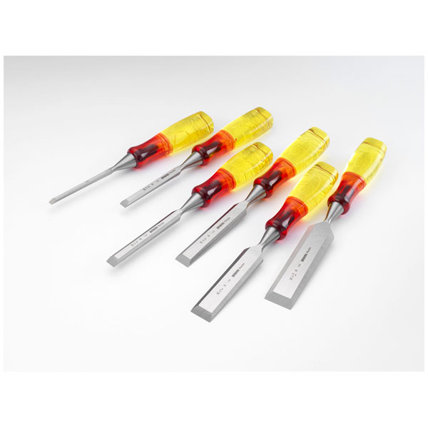 This set of 6 M373 Splitproof Bevel Edge Wood Chisels contains the following: