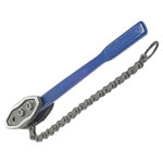 Great for use in confined spaces, trenches, or close to walls. With its double ended reversible replacement jaws and a high breaking strain tensile steel chain with fast positive lock.