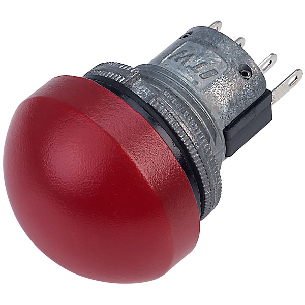 Heavy duty rotary single pole pushbutton switch with domed red actuator, designed with harsh environments in mind. Due to their design, construction and the materials used, these switches are capable of surviving the impact of a 5kg mass dropped from 400mm (20J). Additionally, the switches are panel sealed to IP67 And are manufactured from a non-sparking zinc alloy - making them ideal for use in potentially explosive environments.
