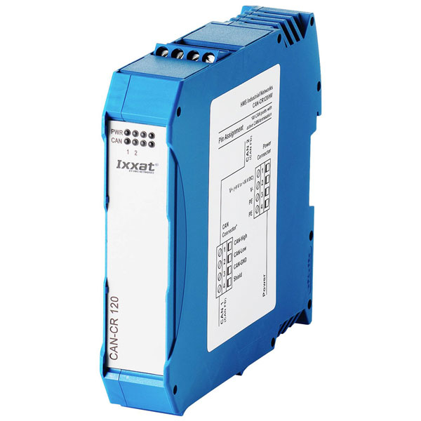The Ixxat CAN-CR120/HV is a robust interface converter used for converting CAN/CAN FD signals, powered by 24 V DC. Designed for industrial automation, it is typically used in gateways or as part of network infrastructure for systems like Modbus, CANopen, or Ethernet. Its durable construction ensures reliable performance in complex communication environments.