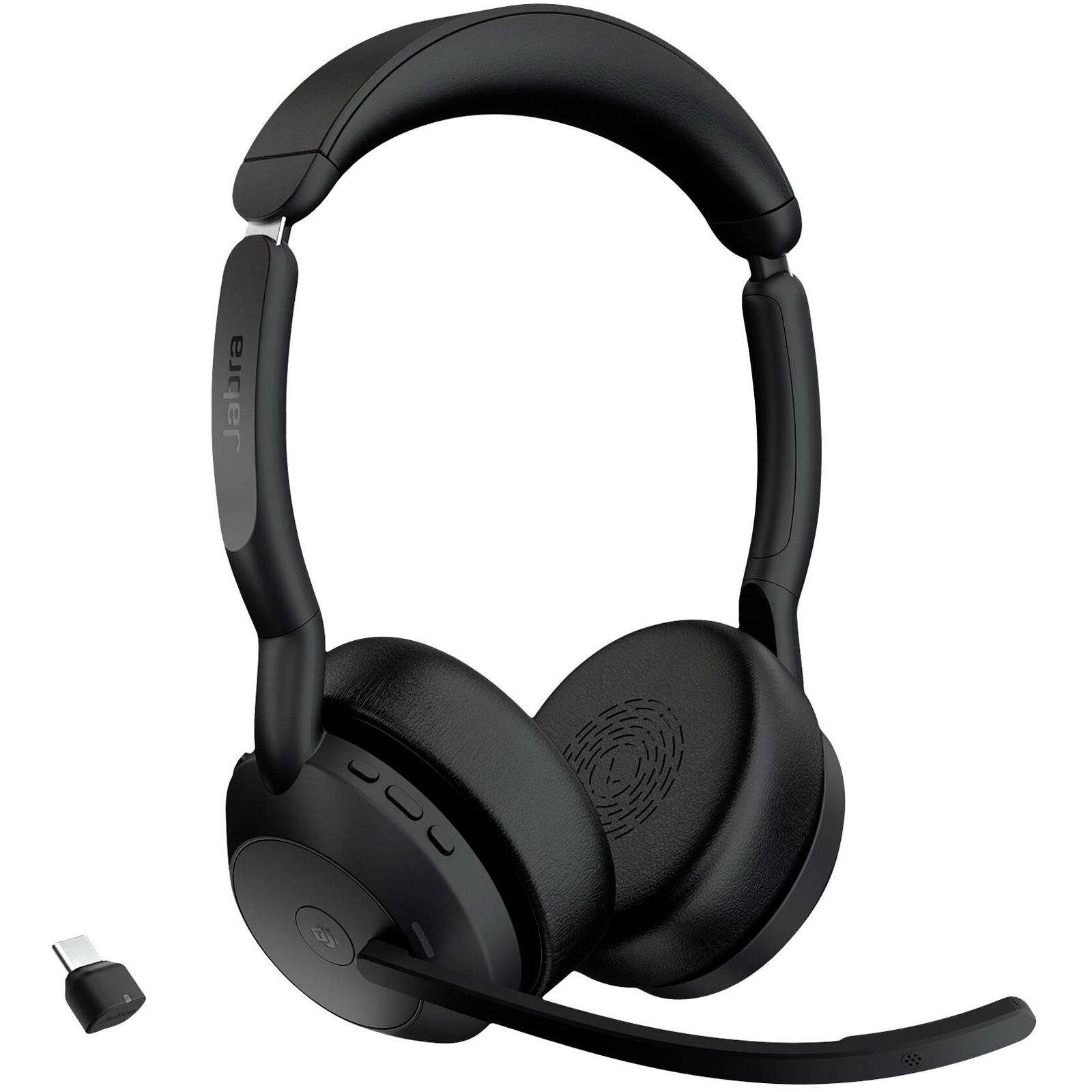 Jabra 25599-999-899 Evolve 2 55 MS On-ear Headset provides advanced audio solutions designed for professional environments requiring efficient communication. This headset features Bluetooth connectivity and active noise cancelling technology, enabling users to enjoy clear, uninterrupted sound even in busy workspaces. Its ergonomic on-ear design ensures comfort during prolonged use, making it suitable for applications such as teleconferencing, customer support, and other tasks demanding reliable audio performance. Engineered for seamless integration with Microsoft Teams, it enhances user productivity through precise audio transmission and reception. The robust build quality supports daily professional use, embodying Jabra's commitment to durable and functional audio equipment.