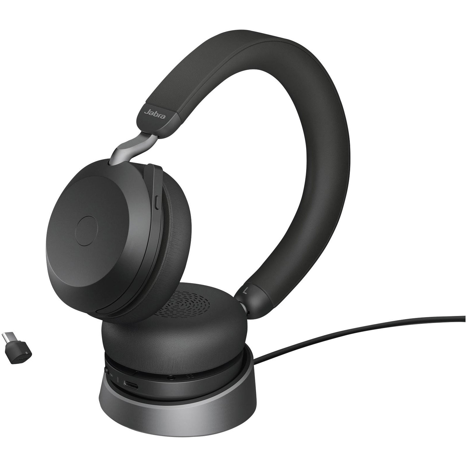 Jabra 27599-989-889 Evolve2 75 is a corded, on-ear headset designed for professional use. This headset is crafted for optimal audio performance in collaborative and focused work environments and features a battery indicator to conveniently display power status. Its durable build and superior sound quality make it ideal for applications in call centres, conference calls, and remote work settings, providing clear and effective communication. The Evolve2 75 headset incorporates advanced noise-cancelling technology, ensuring minimal ambient sound interference, enhancing user experience and efficiency in demanding audio scenarios.