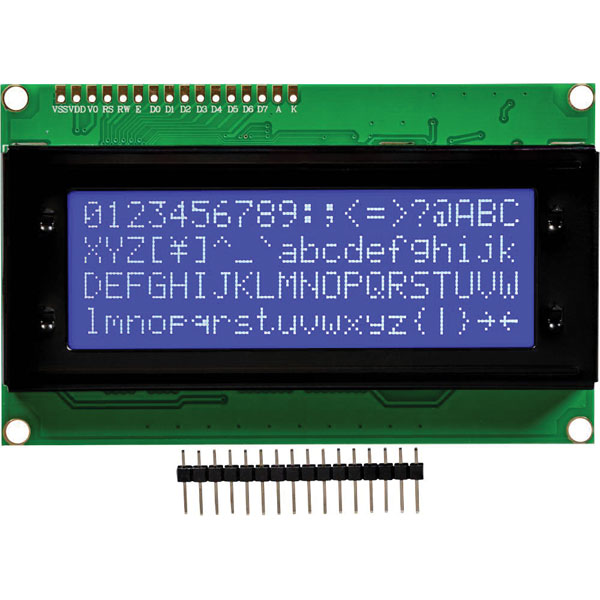 This 20x4 characters LCD is the ideal blue backlight provides a clear and well-readable display that will impress you with any application. The display has many possible applications and can be used as both built-in and plug-in display. A smooth integration is guaranteed in your projects thanks to the proven HD44780 controller chip. The scope of delivery includes a solder-able pin strip that ensures easy connection and assembly. Set quality and flexibility - with this LCD-display you can lighten your ideas.