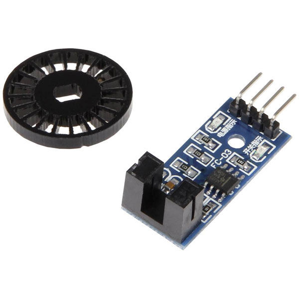 This speed sensor is delivered including perforated disc and integrates itself in your project. The signal output of the sensor is digital. Are you planning a wheeled project, we recommend the following gearbox motor: article 1573543