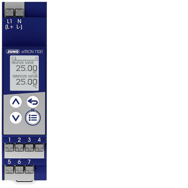 Jumo 00721265 Digital Thermostat for Rail Mounting Backlit Display