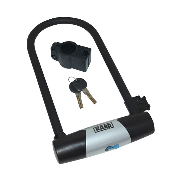 This U-shaped bike lock from Kasp has steel body and a 12mm steel shackle which has been specially hardened to offer greater resistance to attack by saw or bolt cutter. The shackle is secured by a double bolted locking mechanism and a 5-pin dimple key cylinder to thwart even the most determined potential thief.