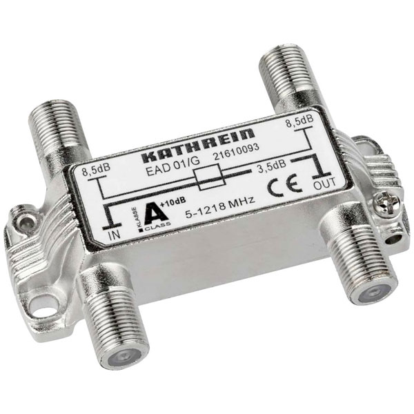 Kathrein 21610093 is a highly functional coaxial connector, specifically designed as a cable TV distributor operating effectively within a frequency range of 5 to 1218 MHz. This component, also referred to as the Kathrein EAD 01/G, is constructed to facilitate reliable signal distribution across multiple channels in cable television and broadband networks. Preferred in engineering environments requiring precise signal splitting, it is commonly employed in both commercial and residential installations to ensure efficient signal propagation. Utilising superior design and materials, this distributor provides optimal performance in maintaining signal integrity and connectivity in complex network systems.
