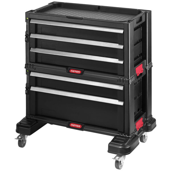 The Keter 237007 workshop trolley, in a factory black finish, is ideal for transporting and organising tools in workshops. This versatile equipment trolley features compartments suited for various tool storage needs. It is perfect for anyone looking to manage and transport tools efficiently within a workshop setting.