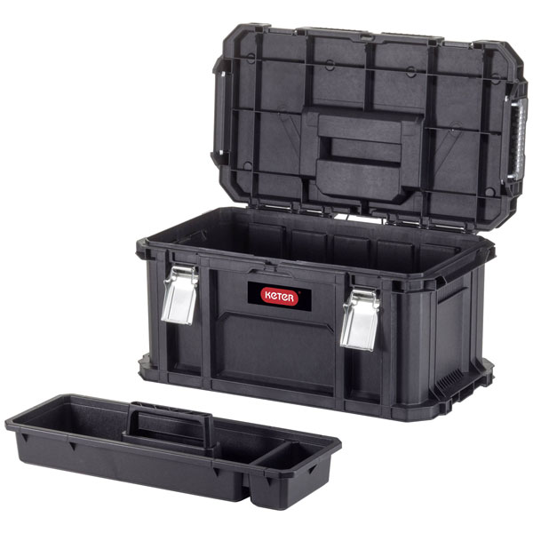 Keter manufactures the 239995 Connect tool box, which is an empty, versatile tool storage solution ideal for both professionals and DIY enthusiasts. The robust black design ensures durability in various working environments. This tool box is perfect for organising and transporting tools efficiently.