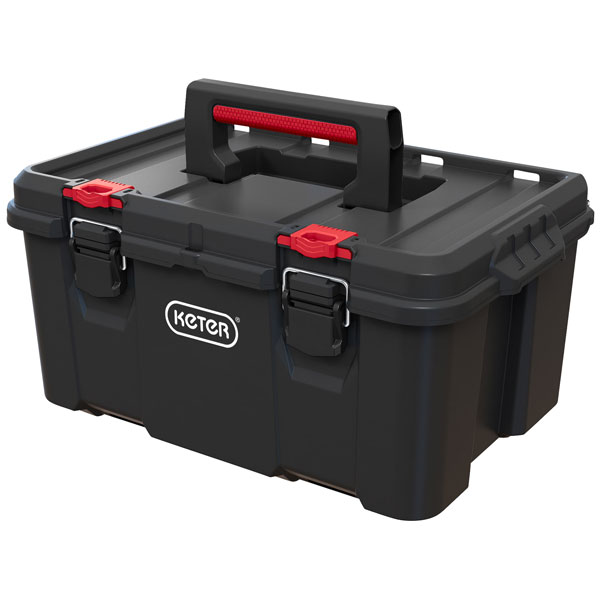 The Keter Stack N Roll Tool Box is made from durable polypropylene resin for reliable everyday usage. Its deep main compartment is ideal for storing power tools and batteries. Heavy-duty metal latches allow you to securely fasten the lid with audible closing indication. Comes with a portable cross-system tray for increased organisation.