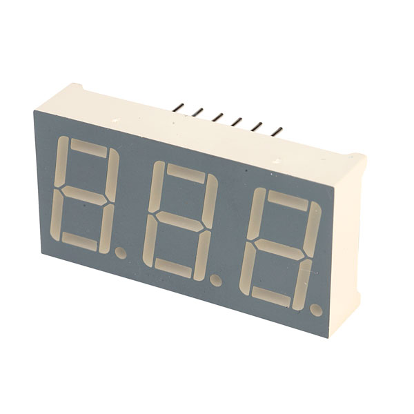 Triple digit 14.2mm high 7-segment display from Kingbright with high efficiency red LED display.