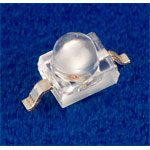 Subminiature surface mount red LED from Kingbright with gull wing connections and a water clear lens.