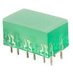 Large rectangular, solid construction LED from Kingbright comprising four high efficiency green LEDs housed in a diffused package which scatters light evenly over the emitting surface.