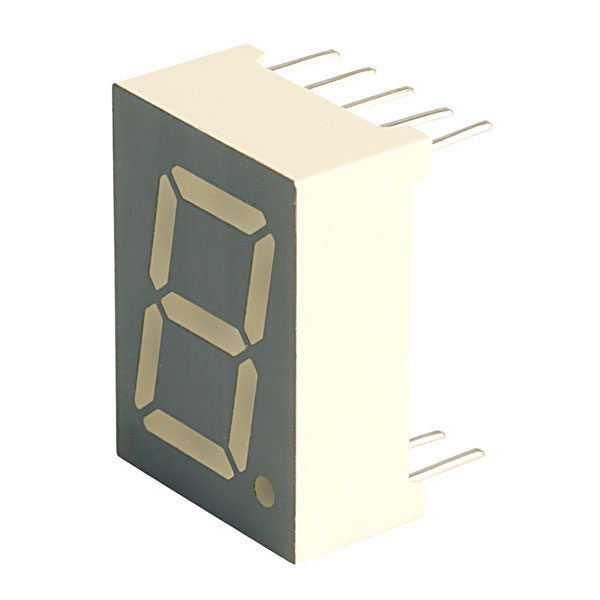 A 13.2mm (0.52in high) seven segment display in green from Kingbright employing advanced GaAlAs technology. White diffused segments and grey display surface maximise on/off contrast.