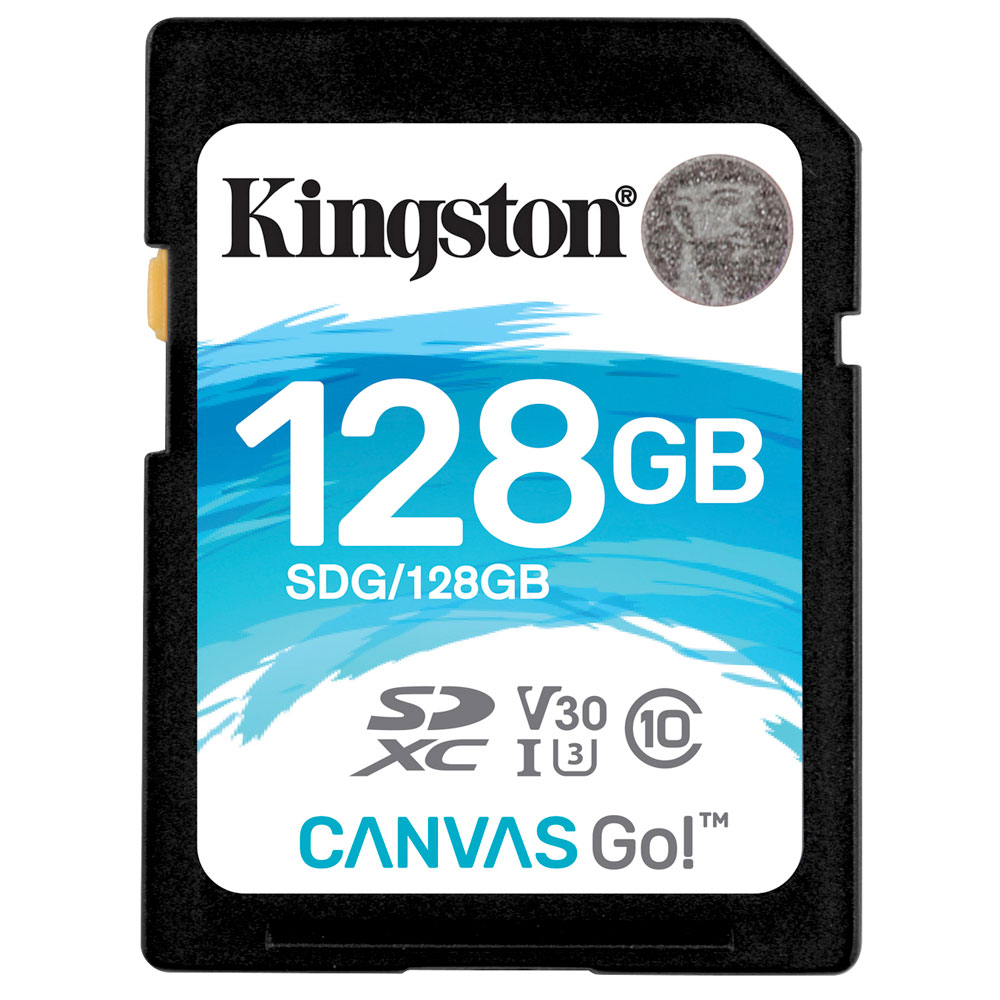 This Canvas Go!™ 128GB SD card from Kingston is designed to be used on the go and is ideal for filming life's adventures in 1080p or even 4K.