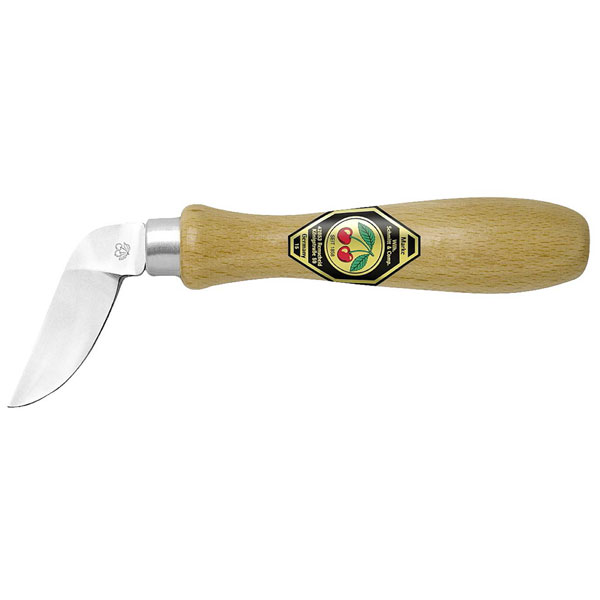 The Kirschen 3360000 groove carving knife features a wooden handle and a curved blade. Its design is ideal for intricate carving tasks and precise groove work. This tool is perfect for woodworkers and craftsmen seeking detailed carving solutions.