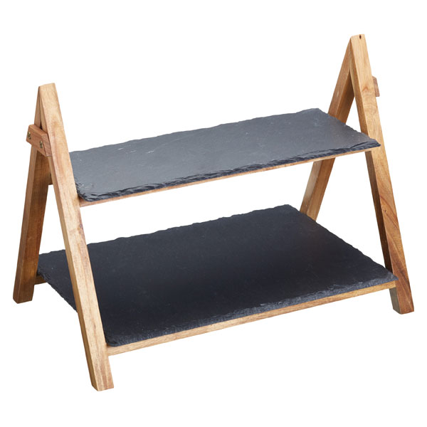 A perfect centrepiece to any table, this beautifully designed Artesà 2 tier serving stand is ideal for sharing a variety of treats and delights, from antipasti to tapas, and entreés to desserts. A delightful addition to any dining table or evening of fine dining, you can also easily store the serving stand away without taking up excessive cupboard space thanks to the removable slate plates and foldaway stand.