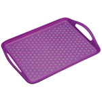 Perfect for serving, carrying and also as a lap tray. Featuring a non slip spot patterned surface to prevent drinks and food from spilling whilst carrying, the tray also features a non-slip rubber underside to avoid slipping whilst in use on your lap. The tray also features large carry handles, ensuring a comfortable and secure grip when carrying the tray. Available as an assorted set of four colours, this tray really does both look and act the part.