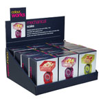 The counter top display includes twelve assorted coloured Colourworks kitchen scales.