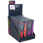 This counter top display of twenty-four clam packed knives are available in all seven Colourworks colours.