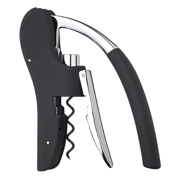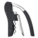 A deluxe corkscrew with a geared action lever-arm mechanism for effortless cork removal. Finished with a satin touch matt black body with contrasting chrome fittings. Includes integral foil cutter, non-stick coated worm, and a spare worm.