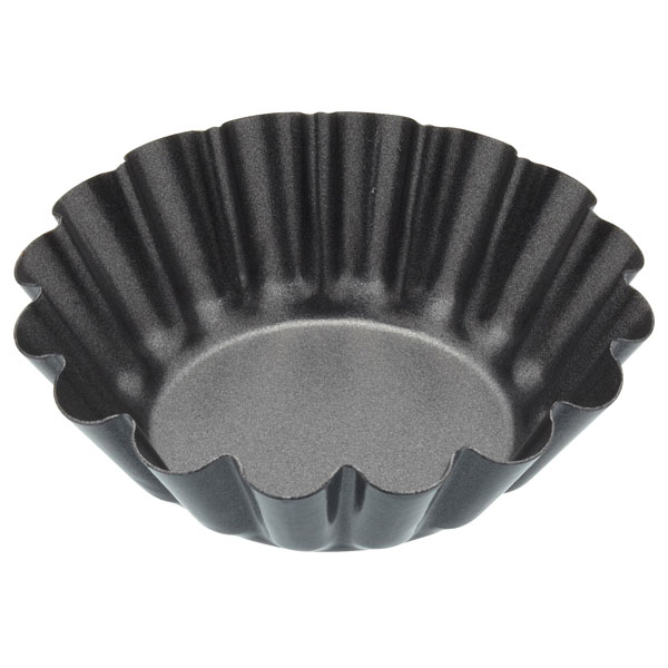 A miniature sized round cake pan with fluted sides, ideal for making mini / individual portion quiches and tartlets. Featuring a heavy duty, durable non-stick coating with a range of additional shapes and items also available.