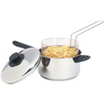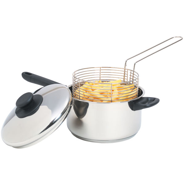 Fry chips from the comfort of your own home with this high quality stainless steel fryer with integrated, lift out stainless steel wire frying basket. Ideal for frying a variety of different foods, the fryer features a 3mm base for even and efficient heating. Other features include a vented lid with phenolic knob, a long phenolic handle and a phenolic side handle for safe and durable use.