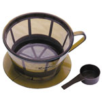 Le'Xpress durable plastic coffee filter with a fine mesh insert. It simply rests on any standard cup and allows filtered coffee to drip through, replacing a cafetiere and producing full bodied coffee with no loss of flavour. The filter can be used in electric coffee machines and is resistant to boiling water. Also includes a one cup coffee measuring spoon.