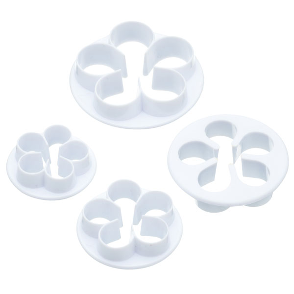 Add some professional decorations to your delicious cakes with this set of four assorted sized rose shaped fondant cutters. Simply press to cut out the shape and then layer each size to create three dimensional roses. Ideal for use with sugarpaste, rolled fondants, royal icing, gumpaste, marzipan and non-edible clays.