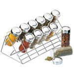 Ideal for storing and dispensing a great selection of dried herbs and spices, this spice set includes twelve clear glass jars with chrome dispensing lids, elegantly stored on a rack for easy storage. Always to hand when needed, each jar is angled in the rack for easy identification of contents through the clear glass base. The chrome effect lids provide an airtight seal, along with an inner shaker setting for easy seasoning.