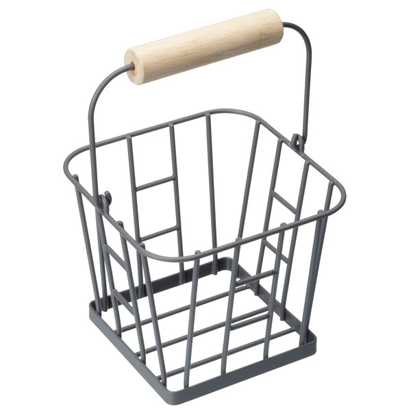 A beautifully modern take on the classic wire design, store eggs safely at room temperature and within easy access in this open wire basket. With a wooden swing handle, the wire egg basket is coloured in a warm deep shade of grey. Holds approx. 16 eggs.
