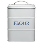 Inspired by beautifully classic storage tins, safely store your flour inside the Living Nostalgia French grey storage tin complete with airtight silicone seals to keep contents extra fresh. Featuring beautifully printed exterior text clearly labels the tin Flour, forming part of the vintage Living Nostalgia collection. With a riveted steel handle for easy use, the tin is designed to maximise your worktop space and reduce clutter by occupying a nice and neat square footprint.