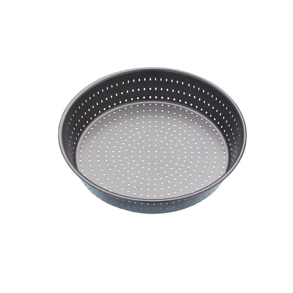 Bake the perfect crispy round pie! Whether sweet or savoury, this dish features a flat rim for creating a beautiful pie crust and perforations along the base and sides to remove moisture and create a golden-brown, crisp crust! With sloped sides, this pan can also be used to bake a delicious tart. Let's banish the soggy bottom forever!