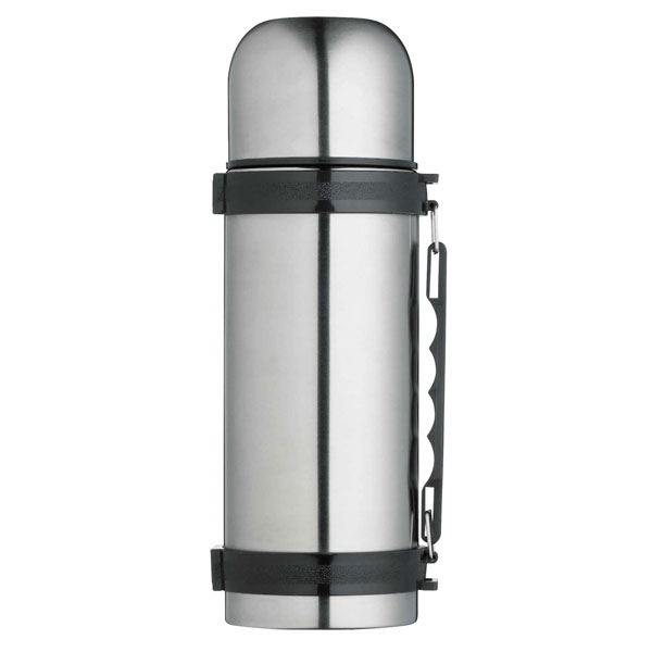 Ideal for keeping soups, coffee and tea all hot and your cold drinks cold! This high quality Master Class flask is virtually unbreakable, with a double walled stainless steel outer casing and inner container. Features a special dual purpose stopper with internal spout for controlled pouring, wide neck to add ice cubes, a modern shaped insulated cap that can also be used as a cup, and a hinged handle and strap for easy carrying, perfect for use on a day out.