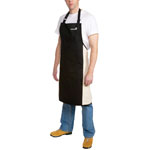 A professional Master Class adjustable apron with deep front twin pockets and generously sized to fit all and an adjustable neck loop. The apron is made from an extremely heavy duty cotton in black, with contrasting inset side beige towelling panels ideal for wiping and drying hands whilst cooking. The perfect kitchen accessory.