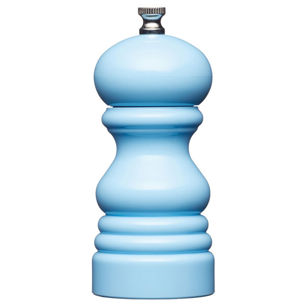 A classic capstan shaped mill with a glossy baby blue coloured casing for use with both salt and pepper. Featuring a highly durable, non-rust ceramic grinding mechanism, perfect to strip and slice peppercorns for better flavour release. Two interchangeable satin finished caps are also supplied, engraved with the letters 'P' and 'S' so you can switch use between salt and pepper over time. Seasonings not included. Other colours are also available enabling you to mix and match colours between salt and pepper pots.
