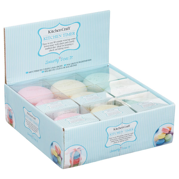Be careful not to tuck into these kitchen timers! These assorted coloured macaroon shaped kitchen timers are ideal for timing your kitchen creations. Cleverly designed to look like a macaroon, these wind up timers can time up to 60 minutes, perfect time for you to get your gorgeously baked cake from the oven!