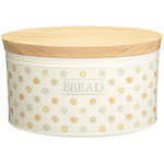 The bread bin with nostalgic charm! This oval shaped bread bin keeps your bread fresher for longer and features a clever dual purpose airtight lid that, when turned over, can be used as a bread board with added grooves to catch the crumbs. Made from fine stoneware the oval shape is decorated in a neutral, soft polka dot pattern and finished with a natural wood lid.