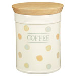 This charming coffee storage jar features an airtight natural wood lid to keep your coffee fresh. The ceramic base is decorated in a neutral, soft polka dot pattern with ribbed detail and labelled "COFFEE" for easy identification.