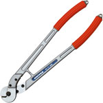 Knipex 600mm Wire Rope and Cable Shears designed for cutting wire ropes and steel rods, copper and aluminium cables. Particularly suitable for cutting overhead cables with strain relief wire (ACSR-cables). Angled cutting tips enable individual rope strands to be separated.
