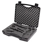 Impact-resistant plastic case. External dimensions: 345 x 80 x 280 mm (W x H x D). Foam insert with recesses for tools, 2 crimping dies and 2 locators.