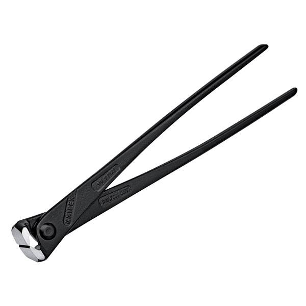 The Knipex Black Atramentized High Leverage Concreter's Nippers offer substantially higher cutting performance, as well as a damping of the cutting stroke after cutting the binding wire, two valuable ergonomic advantages for the user. They can twist and cut wire in one operation, making them fast, reliable and economical.