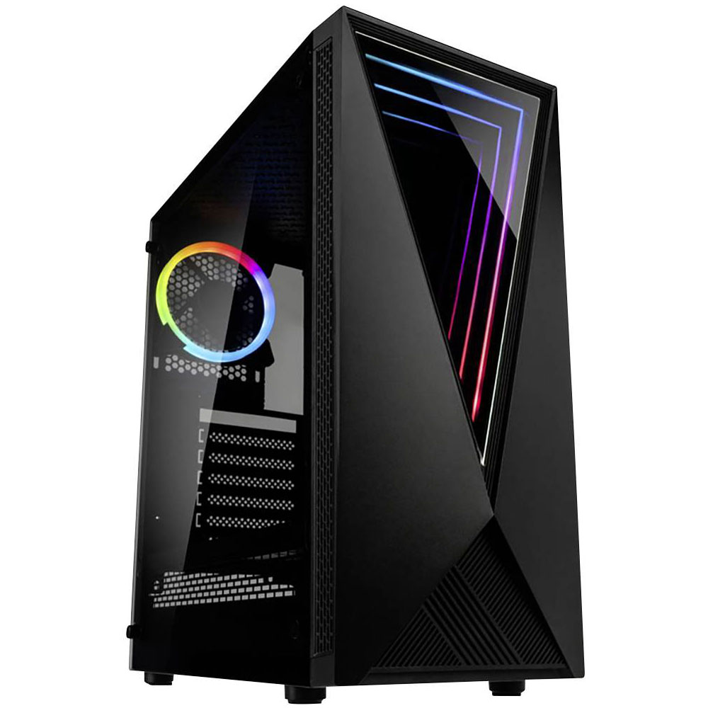 Kolink, part number 00843816100867, presents the VOID RGB Tower Casing, a robust desktop PC enclosure designed for housing large motherboards. This product, also identified by UPC 05999094003422, features a sleek black design with RGB LED accents and is equipped with a windowed side panel that affords visibility of internal components. It integrates an LED fan to enhance cooling performance and a dust filter to maintain system cleanliness, crucial for preserving hardware longevity and reliability. Suitable for high-performance computing applications, this case is engineered to meet the demands of gaming consoles or advanced desktop setups requiring substantial motherboard dimensions. The casing facilitates optimal airflow and cable management, ensuring an efficient and organised assembly environment for PC building enthusiasts and professionals alike.