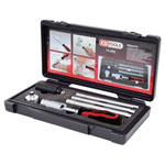 KS Tools manufactures the 6-piece wash basin mounting kit, model number 1162050. This kit includes essential components for securely fitting vanity units, ensuring stability and ease of installation. It is typically used in plumbing projects for residential or commercial bathroom sink installations.