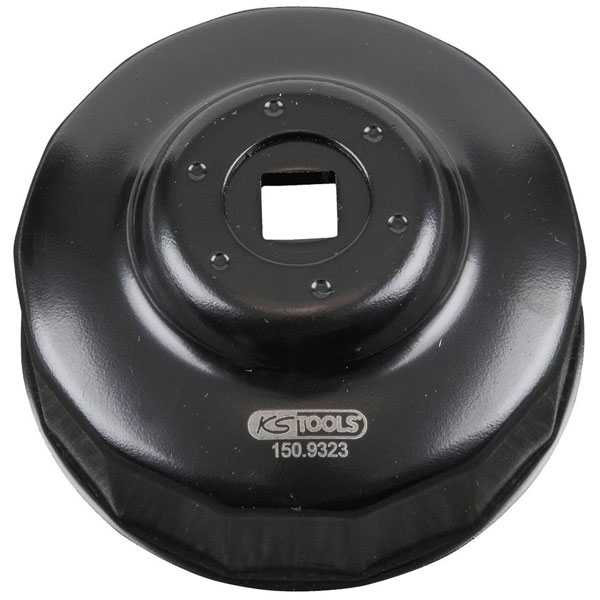 The KS Tools 1509323 oil filter wrench features a 3/8-inch drive, designed for removing oil filters in automotive applications. This tool covers filter sizes between 73 mm and 14 flutes, ensuring compatibility with a variety of vehicle makes. Ideal for use in car repair tasks, it is part of a comprehensive range of automotive tools from KS Tools.