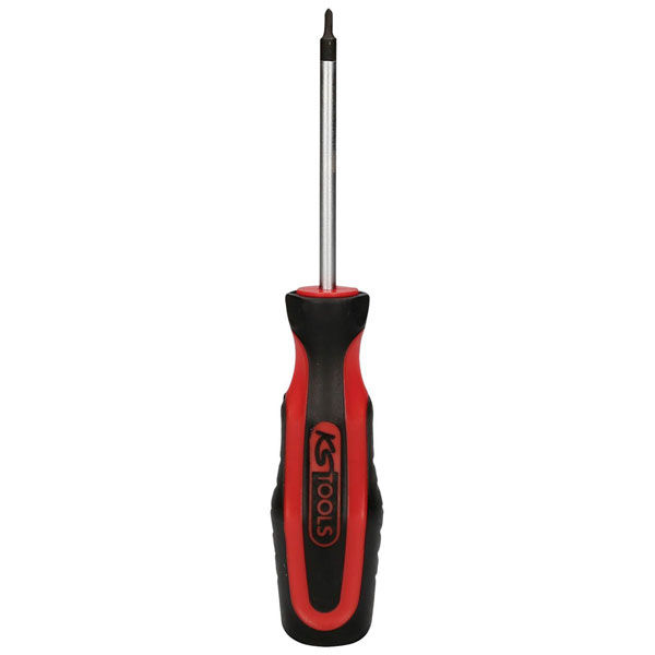 The KS Tools 159.1255 Tri-wing screwdriver, made by KS Tools, features a robust design for durability and precision. It is commonly used in electronics repair and other applications requiring tri-wing screws. This specific tool is essential for tasks involving delicate components, ensuring a secure fit and easy handling.