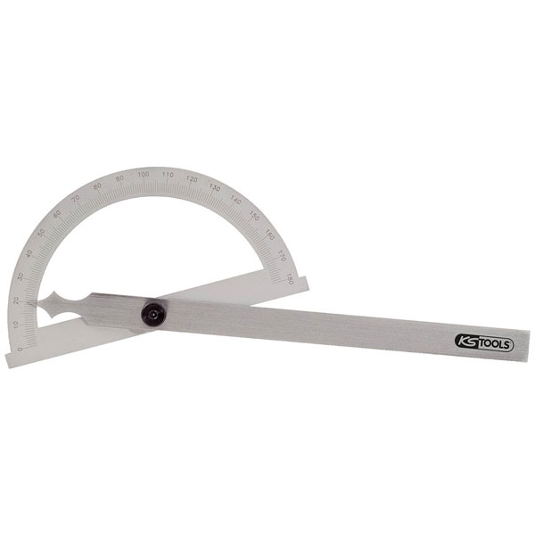 The KS Tools 3000642 goniometer is a precision measuring instrument designed for accurate angle measurements. It features a high-quality, durable construction and is suitable for use in various engineering and craftsmanship applications. The device is essential for tasks requiring precise angular adjustment and alignment.