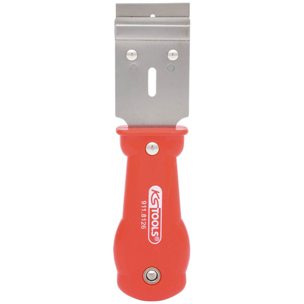 The KS Tools 911.8126 scraper is a 38 mm automotive tool designed for precision work. It is ideal for removing paint, glue, or other residues during car repairs. This durable scraper is a must-have for efficient car maintenance and repair tasks.
